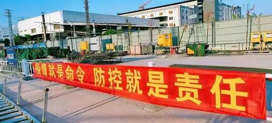 珠三角水資源配置工程建設工地上,防疫宣傳標語格外顯眼。