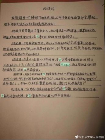 還有一個(gè)小驚喜,我收到了女兒的來(lái)信。她在信中說(shuō)我總是特別忙,忙得經(jīng)常忽略她的存在。但是她也告訴我,媽媽是一名勇士,能幫助很多人起死回生。我真是特別欣慰,在這場(chǎng)沒(méi)有硝煙的戰(zhàn)爭(zhēng)中,女兒懂得了眾志成城,理解了責(zé)任和擔(dān)當(dāng)。