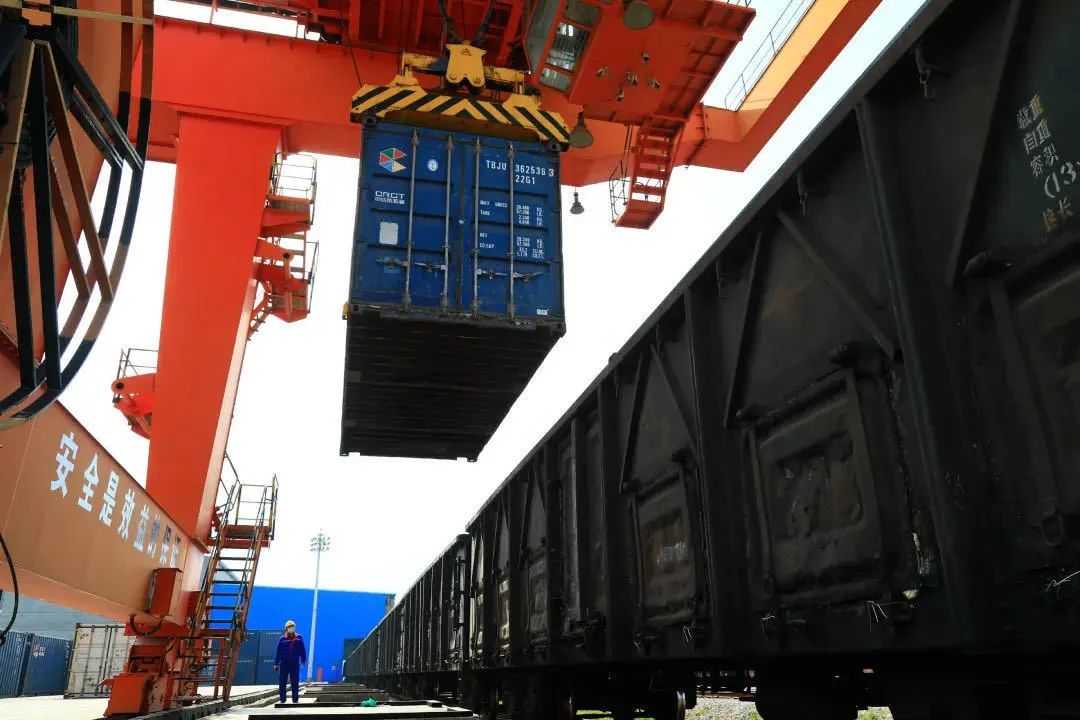 目前,江西省贛州國(guó)際陸港各類(lèi)班列以及企業(yè)已陸續(xù)進(jìn)入常態(tài)化運(yùn)營(yíng)。圖為該港吊裝貨物場(chǎng)景。