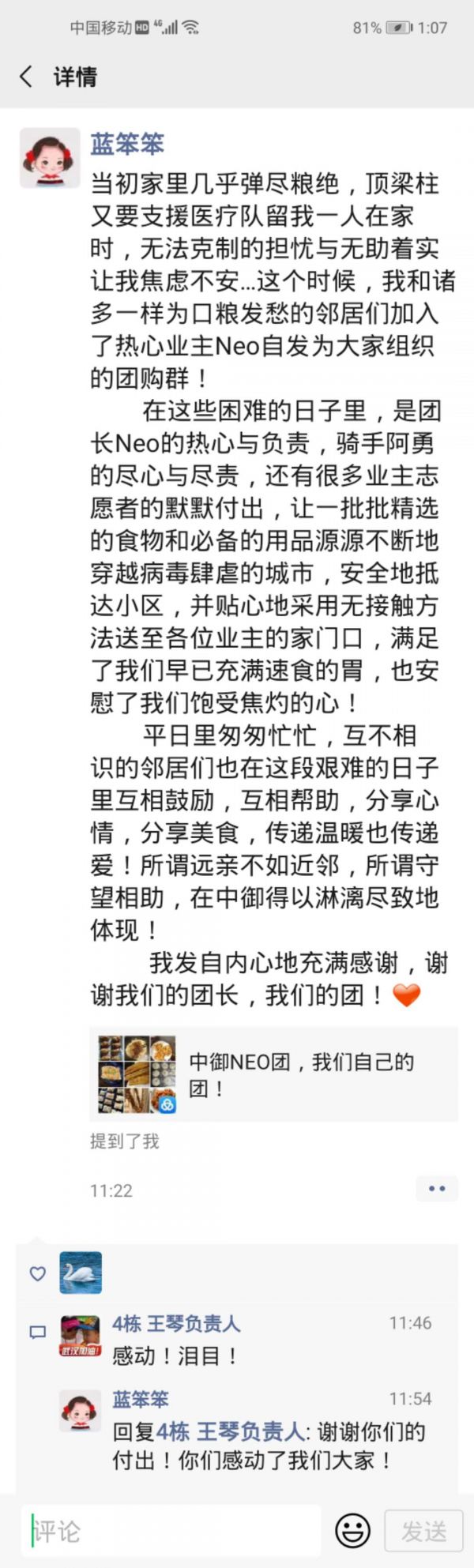 物業(yè)和社區(qū)都很支持李磊他們的工作,物業(yè)一位負責人表示,因為零接觸配送,減少了人員外出和流動,整個小區(qū)很早就實現(xiàn)了新冠肺炎患者零增加!
