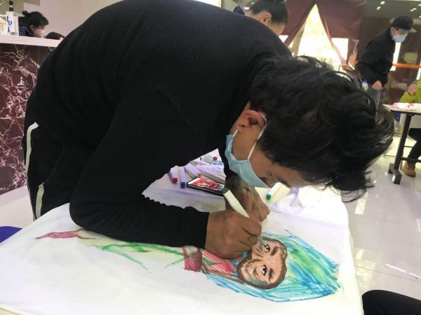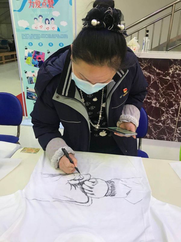 僅僅一天多的時(shí)間就完成了620件文化衫的涂鴉工作。其中有250件由鋼花小學(xué)、鋼城四小的小學(xué)生創(chuàng)作完成,另外370件出自社區(qū)志愿者、在校大學(xué)生和愛心群眾之手。