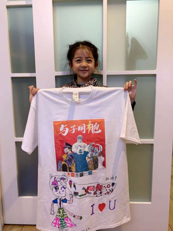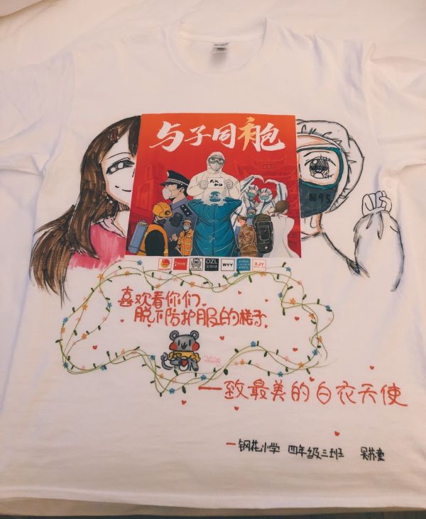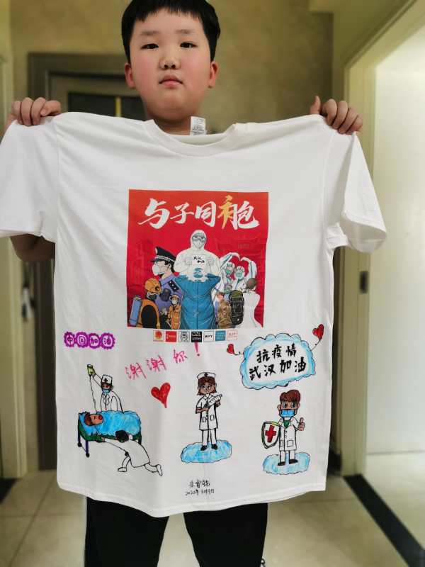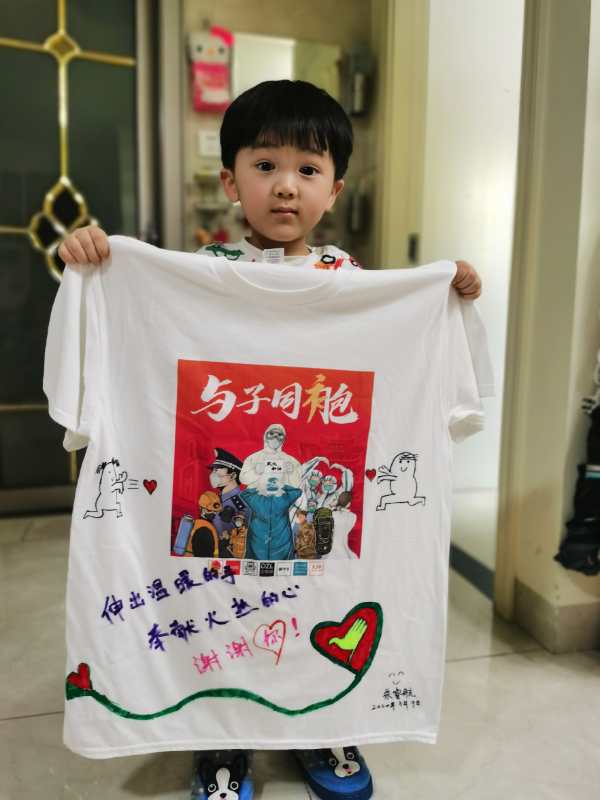 “醫(yī)護(hù)人員拿到文化衫后,都非常高興,她們說(shuō)小朋友畫得太好看了!毙炀搓(yáng)說(shuō)。