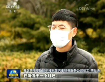 青島西海岸新區(qū)明梓東昱汽車銷售服務(wù)公司員工 李仕杰:在家待得也怪著急的,也沒有收入,在海信干一個(gè)月,還能多一份收入,也不影響原來的工作。