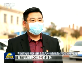 青島西海岸新區(qū)明梓東昱汽車銷售服務(wù)公司總經(jīng)理 王超:因?yàn)橐恢辈荒軤I業(yè),我們也很擔(dān)心員工的流失,這樣的話,員工的工資和社保都由海信來承擔(dān),我們的壓力就小了很多。