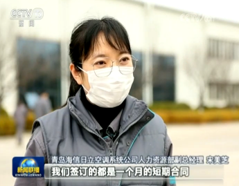 青島海信日立空調(diào)系統(tǒng)公司人力資源部副總經(jīng)理 宋美芝:我們簽訂的都是一個(gè)月的短期合同,疫情緩解或者結(jié)束了,我們的員工就會(huì)陸續(xù)返回,這個(gè)時(shí)候,共享員工也可以回到原來的公司繼續(xù)正常上班了。
