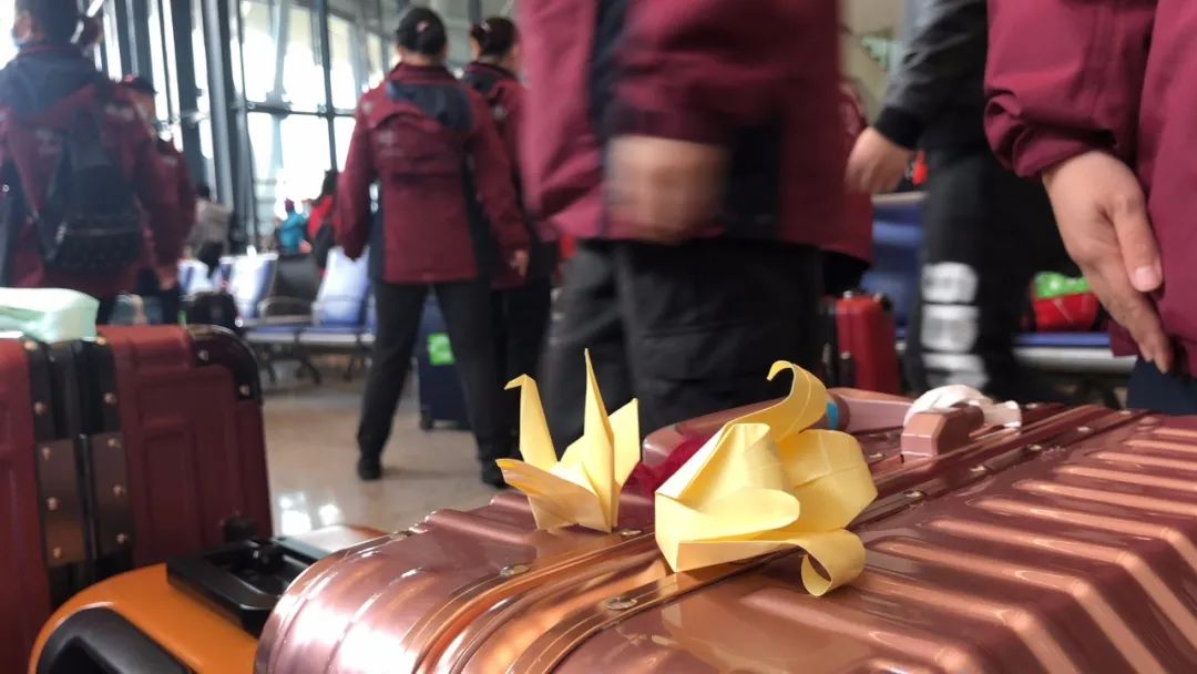 阿依古麗:我們要登機(jī)了。我叫阿依古麗,武漢加油,中國(guó)加油!