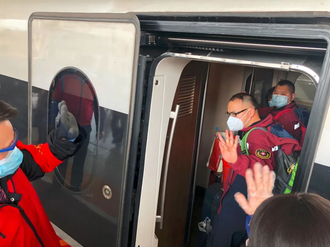 隊(duì)員:你們辛苦!武漢加油!中國(guó)加油……