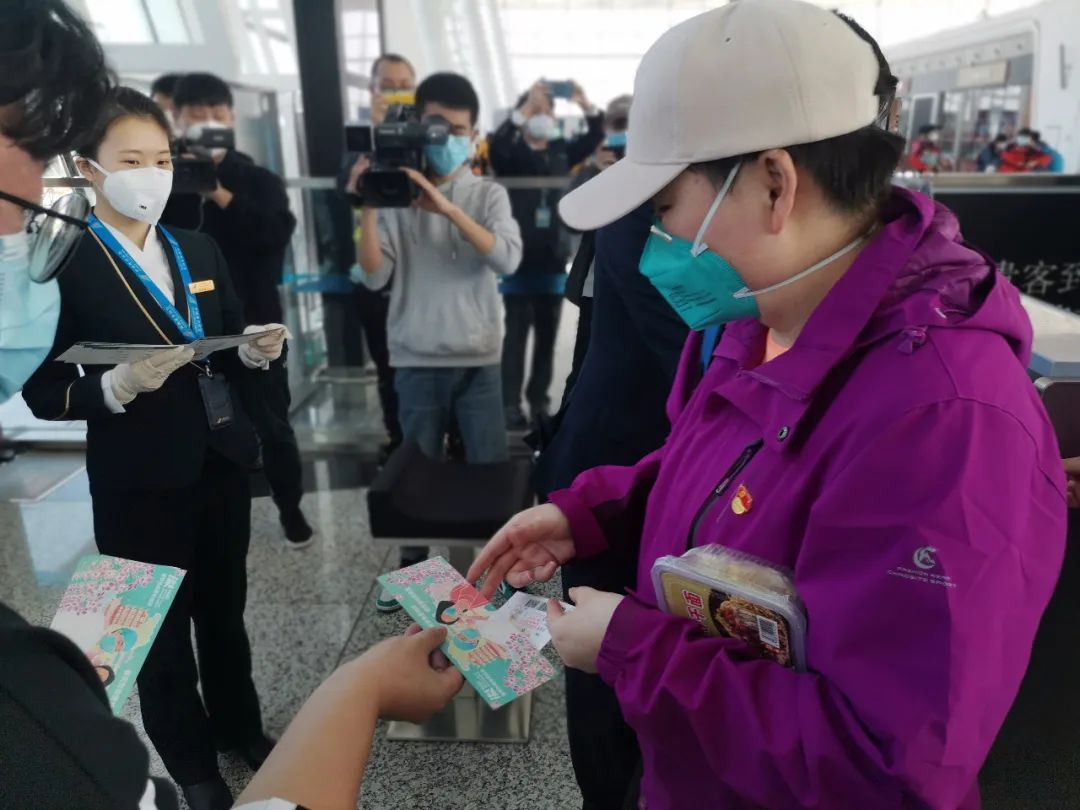南方航空工作人員:這是我們準(zhǔn)備的小禮物,愛(ài)心登機(jī)牌,送給醫(yī)護(hù)人員的,留作紀(jì)念的……