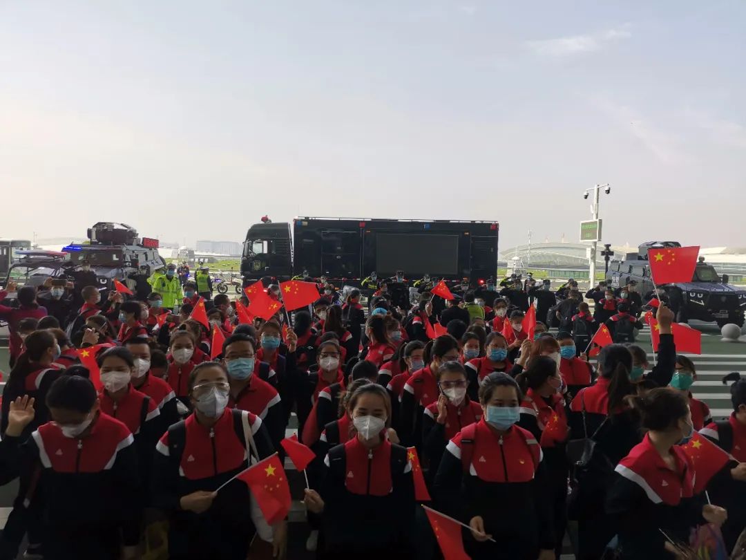 準備凱旋的海南國家緊急醫(yī)學救援隊高喊“武漢加油,中國加油!”