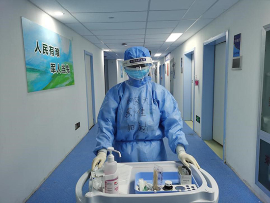 在病區(qū),我們是戰(zhàn)斗員、醫(yī)護員、信息員、監(jiān)督員、勤務員、清潔員、轉運員,披著鎧甲我無所不能。