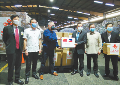 3月21日清晨5時(shí)許,一架滿載著中國援菲醫(yī)療物資的專機(jī),緩緩降落在菲律賓首都馬尼拉尼諾伊·阿基諾國際機(jī)場。這批由中國駐菲律賓大使館協(xié)調(diào)運(yùn)送的醫(yī)療物資,包括新冠肺炎病毒檢測試劑盒、醫(yī)用N95口罩、醫(yī)用外科口罩和防護(hù)服等。物資運(yùn)抵后,即由使館轉(zhuǎn)交菲衛(wèi)生部門,運(yùn)往該國抗擊疫情最前線。