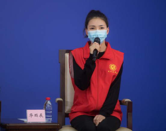 2020年2月23日,國(guó)務(wù)院新聞辦公室在湖北武漢舉行國(guó)務(wù)院新聞辦記者見面會(huì),邀請(qǐng)?jiān)谖錆h疫情防控一線的普通工作者講述他們團(tuán)結(jié)奮戰(zhàn)的故事,并回答記者提問(wèn)。圖為武漢市青山區(qū)鋼花小學(xué)音樂(lè)教師華雨辰在記者會(huì)上。新華社記者 肖藝九/攝