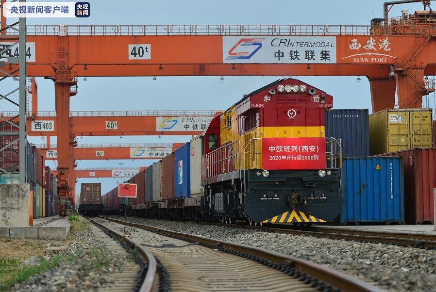 5月6日,X9003次中歐班列滿載49車電冰箱、茶葉、燈具、空壓機等貨物,從中國鐵路西安局集團有限公司新筑車站緩緩駛出,一路向西奔向烏茲別克斯坦,標志著今年中歐班列(西安)開行正式突破1000列。