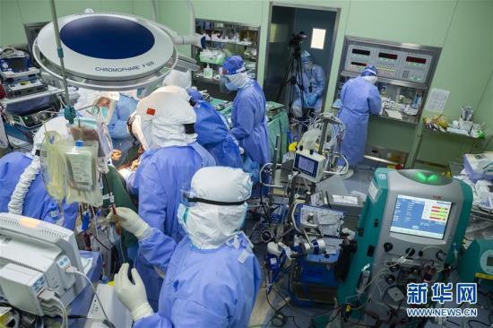 4月24日,患者在接受雙肺移植手術(shù)。4月24日,由中華醫(yī)學(xué)會(huì)胸心外科副主任委員、武漢協(xié)和醫(yī)院器官移植中心主任董念國(guó)教授與江蘇省肺移植中心主任陳靜瑜教授帶領(lǐng)的專家團(tuán)隊(duì),在武漢協(xié)和醫(yī)院西院區(qū)為一名新冠肺炎核酸轉(zhuǎn)陰、不可逆肺纖維化呼吸衰竭的患者成功實(shí)施雙肺移植手術(shù)。經(jīng)過(guò)五個(gè)半小時(shí)的手術(shù),來(lái)自山東腦死亡患者愛(ài)心捐獻(xiàn)的雙肺重新在54歲的患者胸腔內(nèi)重啟,再次打通呼吸通道。經(jīng)過(guò)14天的術(shù)后管理及康復(fù)治療,該患者生命得以重生。據(jù)了解,該患者是目前全國(guó)使用呼吸機(jī)和術(shù)前ECMO(人工肺膜)輔助治療時(shí)間最長(zhǎng)的新冠肺炎患者,達(dá)到73天,近日成功撤除ECMO。