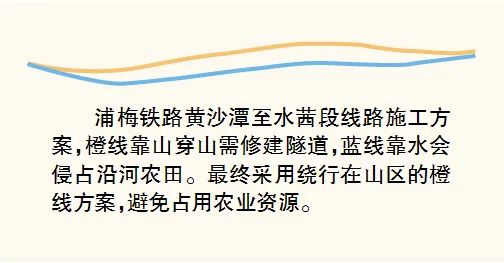 為減少對(duì)沿河農(nóng)田的占用,丁順均和團(tuán)隊(duì)在黃沙潭至水茜段,采用隧道方式繞行,項(xiàng)目投資由此增加481萬元。在綠色生態(tài)保護(hù)區(qū),浦梅鐵路將橋隧比降至54.8%,并采用“生態(tài)袋邊坡防護(hù)”法,減少建筑物對(duì)環(huán)境的破壞,讓“人在車中坐、車在畫中游”的美好設(shè)想變?yōu)楝F(xiàn)實(shí)。