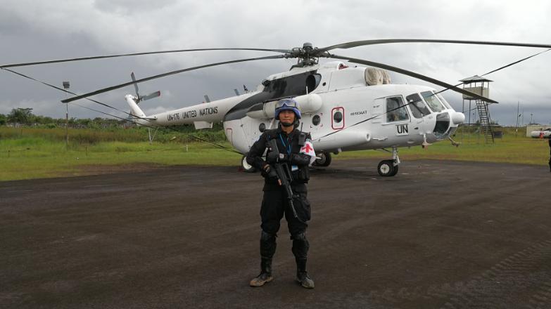 2017年3月,經(jīng)過層層選拔,普興有入選中國(guó)第五支赴利比里亞維和警察防暴隊(duì),成為一名戰(zhàn)斗隊(duì)員兼衛(wèi)生員,隨隊(duì)伍到萬里之外的利比里亞開展為期一年的維和防暴任務(wù)。作為防暴隊(duì)的一員,普興有始終堅(jiān)守在自己的崗位,越是艱難險(xiǎn)阻,越是沖鋒在前。