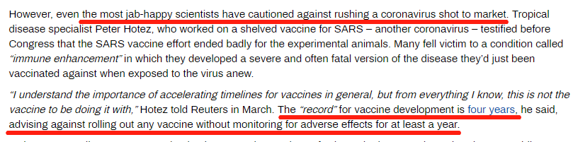 報(bào)道指出,一些專家對在疫苗研發(fā)中跳過動(dòng)物實(shí)驗(yàn)環(huán)節(jié)的做法提出了質(zhì)疑。疫苗科學(xué)家、美國休斯敦貝勒醫(yī)學(xué)院教授彼得·霍特茲此前在美國國會(huì)作證時(shí)就表示,根據(jù)以往經(jīng)驗(yàn),針對冠狀病毒的疫苗此前在進(jìn)行動(dòng)物實(shí)驗(yàn)時(shí)就曾發(fā)生過問題,出現(xiàn)了免疫失敗的情況。