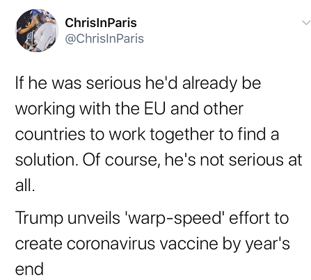 美國網(wǎng)友:急于生產(chǎn)疫苗很危險(xiǎn) 科學(xué)告訴我們 "曲速"不可能