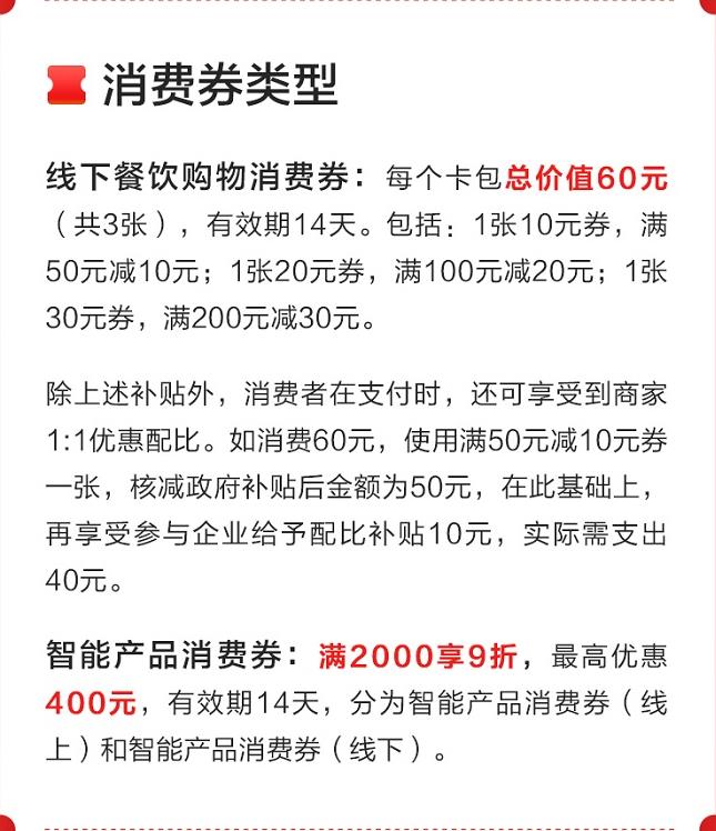 1、面向在京消費(fèi)者發(fā)放的線下餐飲購物消費(fèi)券、智能產(chǎn)品消費(fèi)券;