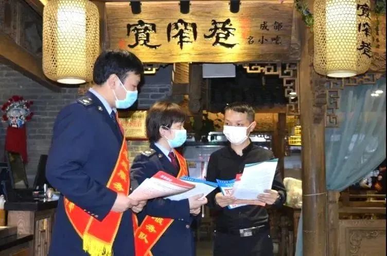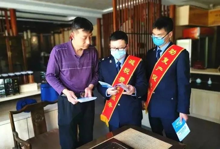圖為西安市稅務(wù)干部向餐飲企業(yè)介紹稅費(fèi)優(yōu)惠政策,助力企業(yè)復(fù)工復(fù)業(yè)。