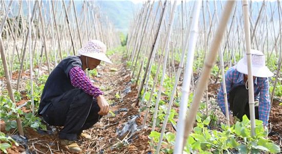 這些年,新立村村民不等不靠,不悲不怨,他們通過翻新土地,大興基建,并利用右江河谷充沛的雨露陽光,將房前屋后的大片沃土種滿了瓜果蔬菜。村民周文革這些年種上了冬瓜和圣女果。夏天,周文革在地里種上冬瓜,到了冬季,土地不用翻新,可繼續(xù)種植圣女果,農(nóng)作物“無縫連接”,全年都有蔬果豐收。同時(shí),還有蔬菜種植專家去到地里指導(dǎo)村民增產(chǎn)增收。“平時(shí),農(nóng)活不忙的時(shí)候,我還到鎮(zhèn)上做一些零工,一天的工錢有100元。這些年,我的收入一年比一年好!弊罱,周文革的冬瓜迎來了豐收,在地里忙著采摘冬瓜的他笑容也越來越深。