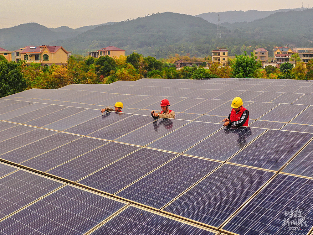 △江西吉安黃崗村,供電公司工人正在檢修“光伏+取暖”設(shè)備,保障村民溫暖過冬。