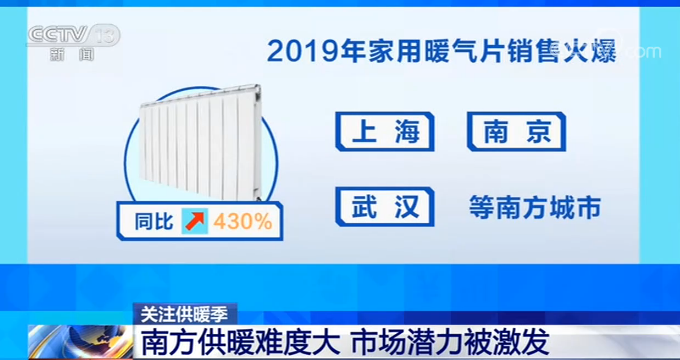 據(jù)統(tǒng)計,2019年,家用暖氣片銷量同比增長430%,而銷量增長的“主力軍”正是上海、南京、武漢等南方城市。