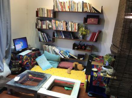 火爐、書(shū)架、木質(zhì)屏風(fēng)、吊起的油紙傘......何葉珂恩的直播房間不足10平米,都是按照自己的想法設(shè)計(jì)。