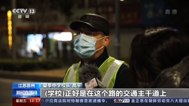 望亭中學校長 高平:學校正好是在這個路的交通主干道上,現(xiàn)在家庭條件都比較好,學生家長都是開車來接送小孩,假如說我們不維護秩序,交通比較堵,盡管說我們鎮(zhèn)里面,也有交警到時候來執(zhí)勤的。但是在前面這一段,是一個真空,學校應該說存在一種安全隱患,那我們就不知不覺把它作為一種分內的事情。