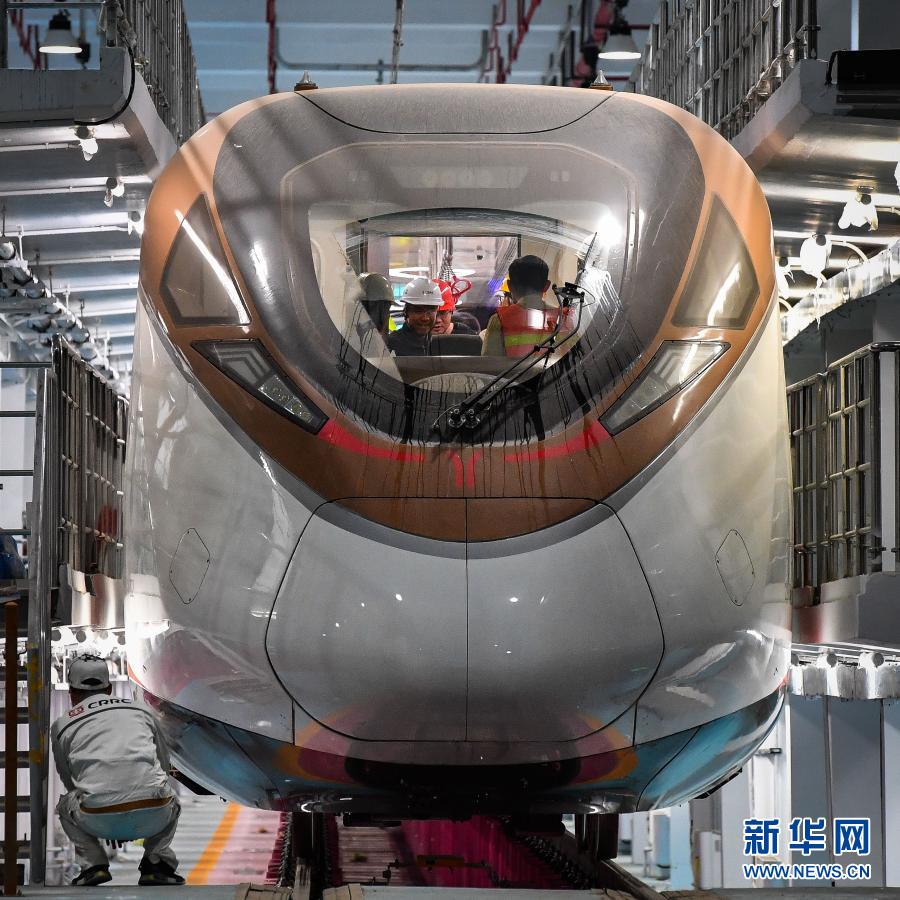 參加熱滑試驗的技術(shù)人員對廣州地鐵18號線時速160公里電客車進(jìn)行發(fā)車前最后一次設(shè)備狀況查驗(3月3日攝)。新華社記者 劉大偉 攝