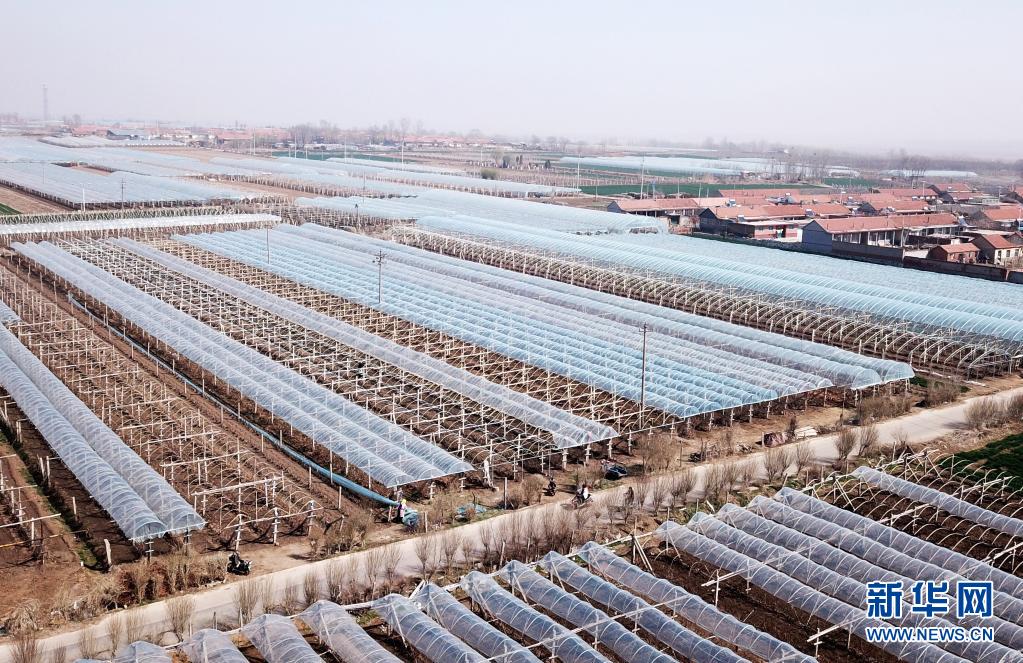 青島萊西市溝東村新擴建的葡萄種植大棚(無人機照片,3月25日攝)。新華社記者 李紫恒 攝