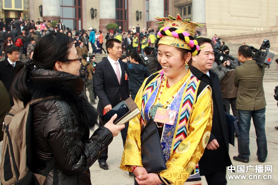 3月17日(星期日)上午9時(shí),第十二屆全國(guó)人大一次會(huì)議閉幕會(huì)在人民大會(huì)堂萬(wàn)人大禮堂隆重舉行。閉幕會(huì)議程包括:表決關(guān)于政府工作報(bào)告的決議草案,表決關(guān)于2012年國(guó)民經(jīng)濟(jì)和社會(huì)發(fā)展計(jì)劃執(zhí)行情況與2013年國(guó)民經(jīng)濟(jì)和社會(huì)發(fā)展計(jì)劃的決議草案;表決關(guān)于2012年中央和地方預(yù)算執(zhí)行情況與2013年中央和地方預(yù)算的決議草案;表決關(guān)于全國(guó)人民代表大會(huì)常務(wù)委員會(huì)工作報(bào)告的決議草案;表決關(guān)于最高人民法院工作報(bào)告的決議草案;表決關(guān)于最高人民檢察院工作報(bào)告的決議草案。議程結(jié)束后,中華人民共和國(guó)主席習(xí)近平、全國(guó)人大常委會(huì)委員長(zhǎng)張德江發(fā)表了重要講話(huà)。圖為閉幕會(huì)議后一名人大代表在人民大會(huì)堂外接受采訪(fǎng)(中廣網(wǎng)記者陶宏祥攝)