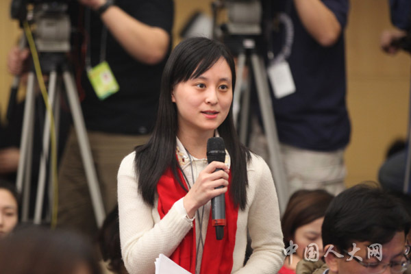 3月11日上午,十二屆全國人大二次會(huì)議在梅地亞中心舉行記者會(huì),中國人民銀行行長周小川等五位嘉賓就“金融改革與發(fā)展”的相關(guān)問題回答中外記者的提問。圖為深圳衛(wèi)視記者提問。羅榮 攝