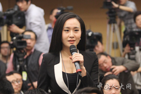 3月11日上午,十二屆全國人大二次會議在梅地亞中心舉行記者會,中國人民銀行行長周小川等五位嘉賓就“金融改革與發(fā)展”的相關(guān)問題回答中外記者的提問。圖為湖南衛(wèi)視記者提問。羅榮 攝