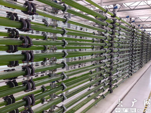 該實(shí)驗(yàn)室中展示的微藻生物固碳技術(shù)是該集團(tuán)技術(shù)創(chuàng)新的重要組成部分。它是利用微藻光合作用吸收工農(nóng)業(yè)生產(chǎn)過程中排放的二氧化碳等廢棄,通過低成本收集和高效油脂提取等后處理技術(shù),聯(lián)產(chǎn)生物柴油、保健品原料和飼料添加劑等產(chǎn)品。據(jù)稱,目前該技術(shù)已成功入選國家高技術(shù)研究發(fā)展計(jì)劃(863計(jì)劃),并獲得專項(xiàng)基金支持。內(nèi)蒙古達(dá)拉特旗已開展國家級(jí)微藻生物能源產(chǎn)業(yè)化示范項(xiàng)目。原本平凡的微藻泥,竟然成為了生物柴油和食用油的來源,這項(xiàng)技術(shù)不僅帶來了環(huán)保開發(fā)、高效開發(fā),還實(shí)現(xiàn)了零排放,實(shí)在可謂神奇。