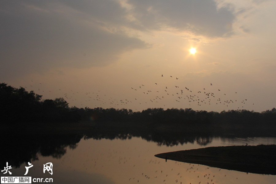 夕陽(yáng)西下,歸鳥(niǎo)齊飛(央廣網(wǎng)記者 劉千里 攝)