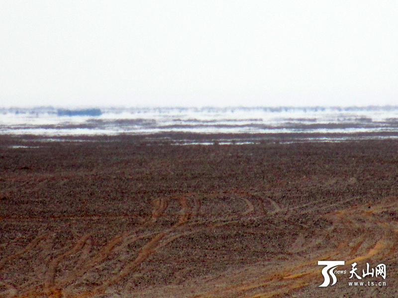 全國旅游網(wǎng)媒新疆行記者在海市蜃樓觀景臺上拍完照片,坐上車,向前方海市蜃樓開去。隨著車輛的前行,“湖水”慢慢“退下”,一行人才確定那片誘人的湖是假象。