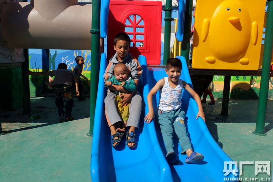 平頂山社區(qū)孩子們在社區(qū)新建的游樂場玩耍。(央廣網(wǎng)記者 龍明潔/攝)