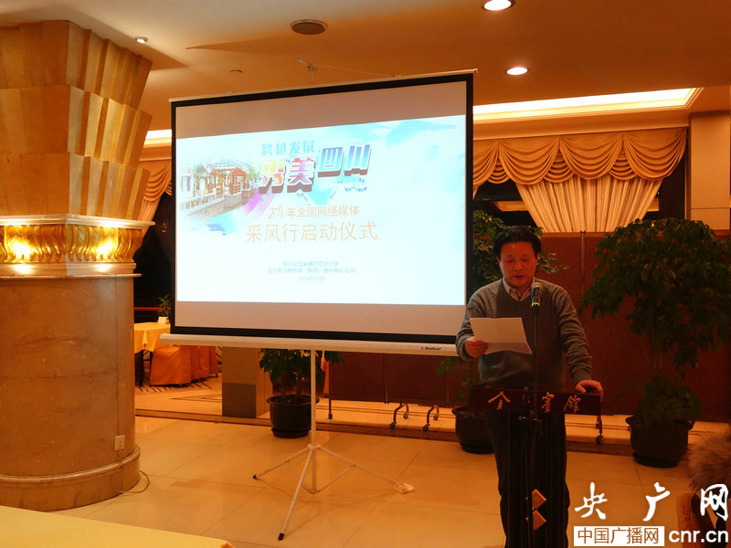 啟動(dòng)儀式上,四川省委外宣辦副主任陶俊培發(fā)表了致辭,對(duì)各家網(wǎng)絡(luò)媒體給予四川宣傳工作的大力支持表示了衷心地感謝,希望各家網(wǎng)絡(luò)媒體充分發(fā)揮互聯(lián)網(wǎng)的傳播優(yōu)勢(shì),展示媒體正能量,宣傳四川在實(shí)現(xiàn)兩個(gè)跨越發(fā)展過程中的新舉措,感受四川秀美山川、悠久歷史的獨(dú)特魅力。