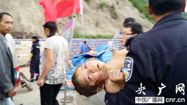 走到進入龍頭山災(zāi)區(qū)的沙壩村岔路口時,由于要進入災(zāi)區(qū)太多,很快就形成交通堵塞,民警現(xiàn)場疏導(dǎo)交通,就在這時,從樹林里跑出一個抱著孩子的男子,孩子光著上身,頭發(fā)上、臉上、褲子上粘滿了泥漿,頭部和手上都在流血,可能是由于疼痛和遭受驚嚇,這個孩子全身發(fā)抖,而男子已經(jīng)筋疲力盡,快跑不動了。情況緊急,撒闖趕快跑到男子面前,一把接過孩子,邁開步子,就朝有醫(yī)生的方向跑,孤立無助的孩子爭著雙眼,雙手緊緊抱著撒闖的肩膀,腦子里滿是救人念頭的撒闖抱著孩子,不知道跑了有多遠(yuǎn),把孩子送給醫(yī)務(wù)人員,緊接著孩子被送上了救護車。