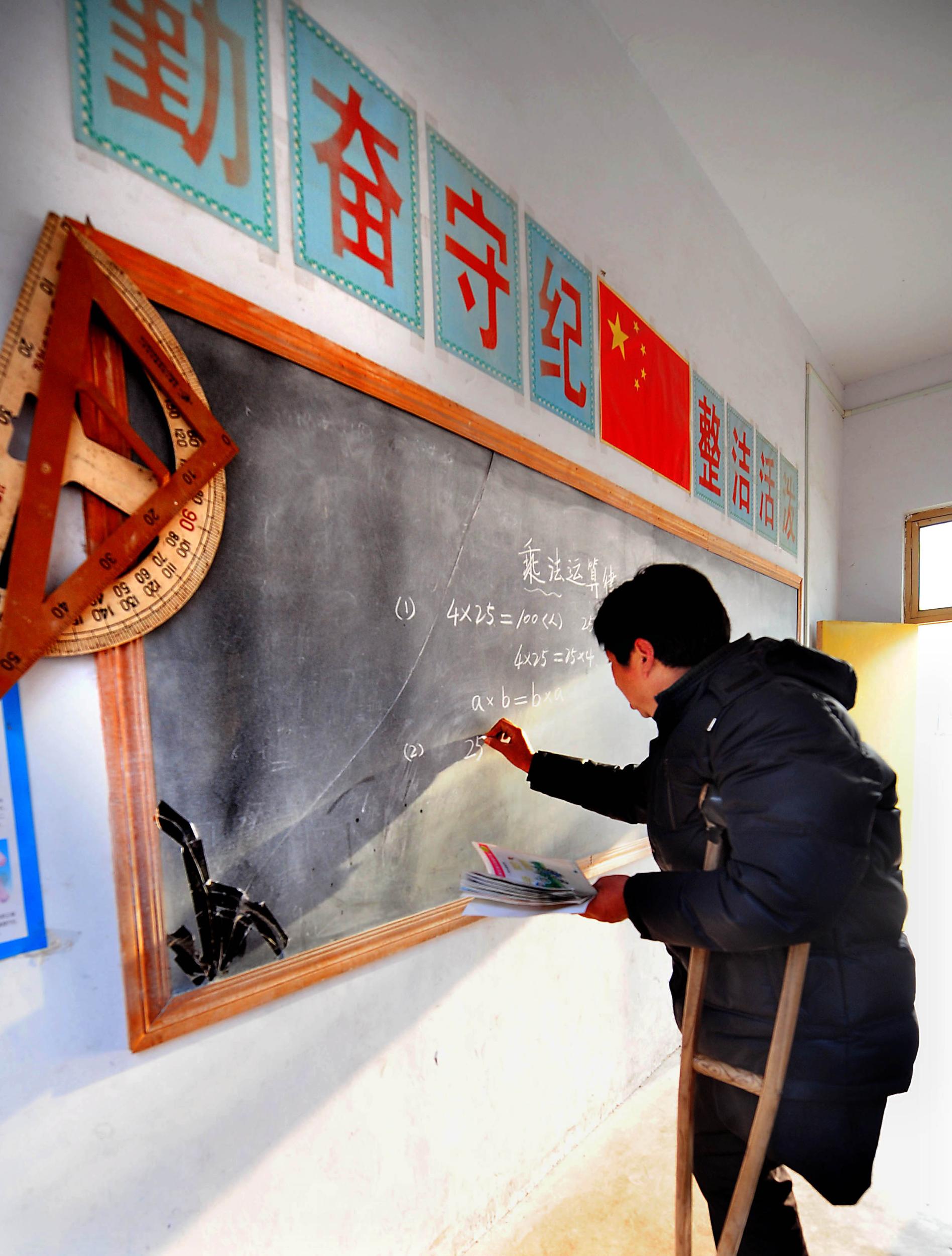 雨過(guò)天晴,空氣中彌漫著幾分涼意,河南洛陽(yáng)市汝陽(yáng)縣王坪鄉(xiāng)孤石小學(xué)的一間教室里,一位學(xué)生正聲情并茂地朗誦自己的作文《我的老師》。學(xué)生作文里的老師叫孫克會(huì),孫老師3歲那年上山砍柴,不幸摔斷了左腿,從此與拐杖為伴。1976年,經(jīng)過(guò)鄉(xiāng)里公開(kāi)選拔,孫克會(huì)成了大坪鄉(xiāng)孤石小學(xué)的老師。在孤石小學(xué),孫克會(huì)老師的課,是孩子們最喜歡聽(tīng)的。只要聽(tīng)到外面孫老師拄著拐杖的聲音,同學(xué)立馬安靜下來(lái),等著老師上課。