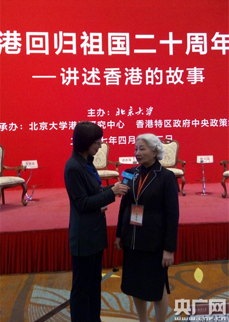 今年四月在北大舉行的香港回歸祖國二十周年研討會上記者采訪梁愛詩