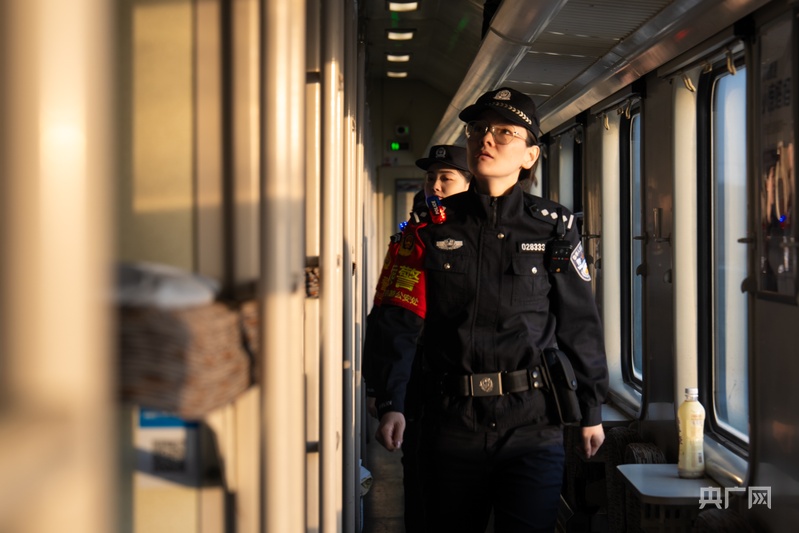 乘警巡視列車(chē)車(chē)廂(央廣網(wǎng)發(fā) 楊曉玲 攝)
