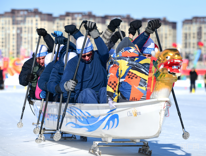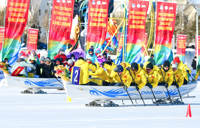 運動員們手握冰釬、奮力揮劃,破冰前行的龍舟如離弦之箭,在潔白冰面上疾馳穿梭,每一個動作都凝聚著團隊的協(xié)作與默契,每一次沖刺都展現(xiàn)著奮進的力量與激情。據(jù)悉,本次賽事設(shè)置12人龍舟100米、200米直道賽,5人龍舟100米直道賽,以及極具觀賞性的12人龍舟400米冰面漂移項目,全方位展現(xiàn)冰上龍舟運動的獨特競技魅力與視覺震撼。