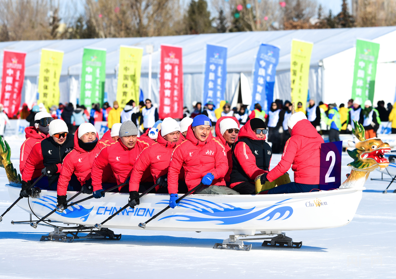 冰上龍舟是一項融合競技性、團隊性、娛樂性的冰上運動,是傳統(tǒng)龍舟項目的創(chuàng)新和延伸。它既保留了傳統(tǒng)龍舟項目的技巧性和競技性,又打破了龍舟運動的季節(jié)限定。