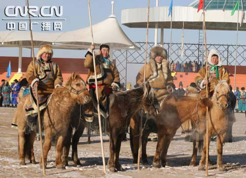 中廣網(wǎng)呼和浩特1月30日消息(記者阿都?xì)J)蒙古族被稱為“馬背民族”,歷史形成以馬文化為主要內(nèi)容的傳統(tǒng)。日前,在內(nèi)蒙古東烏珠穆沁旗烏里雅斯太鎮(zhèn)舉行的第四屆“吉祥 烏珠穆沁”草原冰雪那達(dá)慕期間,“馬背文化”再次得到彰顯。10公里速度賽馬、馬上拾哈達(dá)、中蒙業(yè)余馬頭琴邀請(qǐng)賽等活動(dòng),將這里的冬季那達(dá)慕推向高潮。