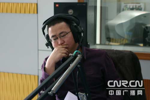 設(shè)在中央臺駐內(nèi)蒙古記者站直播間“全家!保ㄇ芭抛笠粸閮(nèi)蒙古記者站站長陳青平)