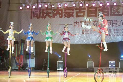 內(nèi)蒙古雜技團(tuán)的《五人踢碗》節(jié)目,2001年獲中國(guó)首屆“金菊獎(jiǎng)”雜技比賽優(yōu)秀節(jié)目獎(jiǎng)、最佳服裝設(shè)計(jì)獎(jiǎng),2004年獲“金獅獎(jiǎng)”第六屆全國(guó)雜技比賽金獎(jiǎng),2005年獲第二十三屆朝鮮“四月之春”友誼藝術(shù)節(jié)金獎(jiǎng),2006年獲第七屆中國(guó)武漢國(guó)際雜技節(jié)金獎(jiǎng),2007年獲第二十三屆意大利金色馬戲節(jié)金獎(jiǎng)和第二十八屆法國(guó)“明日”世界雜技節(jié)銀獎(jiǎng)。(詠梅)(圖片來(lái)源:新浪赤峰 中國(guó)文化網(wǎng))