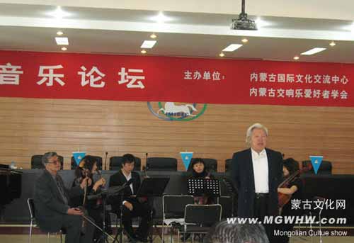 內(nèi)蒙古國際文化交流中心所舉辦的音樂論壇,是文化中心對先進(jìn)文化發(fā)展規(guī)律進(jìn)行的新探索,通過論壇整合內(nèi)蒙古民族音樂創(chuàng)作人才、理性思考音樂創(chuàng)作規(guī)律,展示蒙古民族音樂發(fā)展成果,為下一步內(nèi)蒙古音樂創(chuàng)作的進(jìn)一步繁榮發(fā)展打造一個嶄新的平臺,將對民族音樂藝術(shù)的發(fā)展起到促進(jìn)作用。同時,音樂論壇也是內(nèi)蒙古國際文化交流的基礎(chǔ),此活動必將為今后“外向型、高層次”文化交流創(chuàng)造良好的條件和環(huán)境。