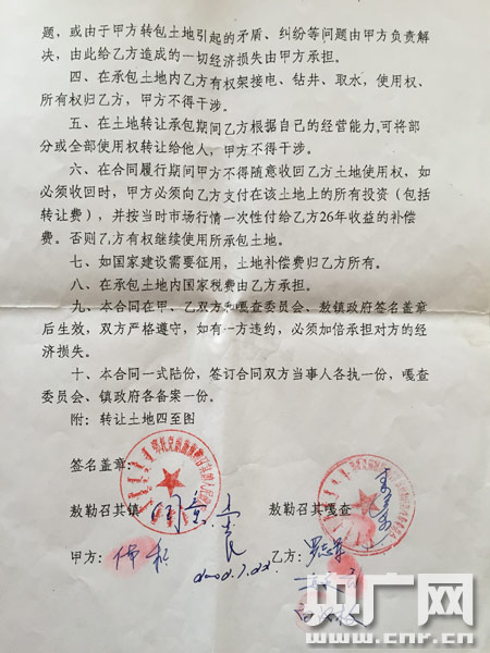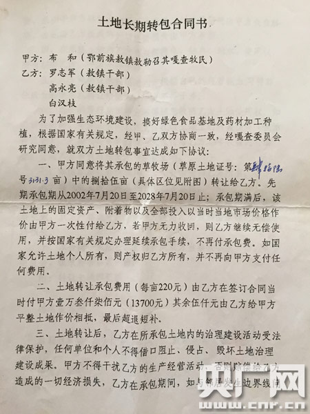敖鎮(zhèn)干部承租布和其勞的草場合同(央廣網(wǎng)記者 白宇 攝)